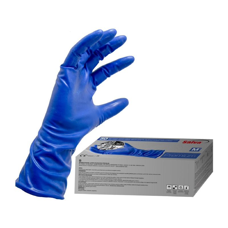RUKAVICE LATEKS PREMIUM M SALVA 50 KOM PLAVE JAČE